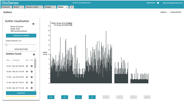 特征屬于物理領(lǐng)域,含義屬于人類認知。要將特征與含義聯(lián)系起來,需要 OtoSense AI 和人類專家之間展開互動。我們花了大量時間研究客戶的反饋,開發(fā)出人機界面 (HMI),讓工程師能夠高效地與 OtoSense 交互,設(shè)計出事件識別模型。這個 HMI 允許探索數(shù)據(jù)、標(biāo)記數(shù)據(jù)、創(chuàng)建異常模型和聲音識別模型,并測試這些模型。