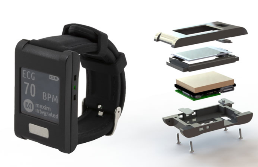 Maxim Integrated(美信)一直以來都在大力推廣其健康傳感器平臺(Health Sensor Platform HSP),HSP是一種模塊化智能手表外形,可以監(jiān)控用戶的心電圖(ECG),心率和體溫。
