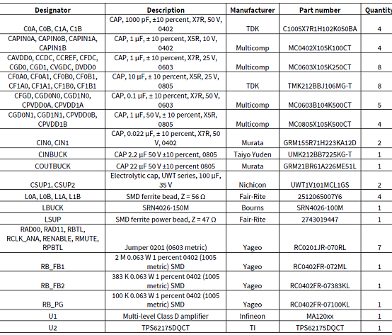 infineon公司的MA12040是基于專有的多級(jí)開關(guān)技術(shù)的無濾波器高效音頻功率放大器,支持寬工作電壓,工作電壓+4V到+18V(PVDD)和+5V(A/DVDD),允許使用在許多差分應(yīng)用中.多級(jí)開關(guān)技術(shù)在工作時(shí)有非常低的功耗.MA12040具有嵌入數(shù)字管理方案,功率管理算法大大地調(diào)整開關(guān)頻率和調(diào)制,以優(yōu)化功率損耗和輸出功率范圍內(nèi)的EMI,其4階反饋回路保證了低失真和高PSRR.MA12040具有對(duì)DC,短路,超溫和欠壓狀態(tài)的保護(hù)功能.18V PVDD時(shí)的空閑功耗小于100mW,1W時(shí)的效率大于79%(1kHz sine, 8Ω),滿功率時(shí)的效率大于92%(1kHz sine, 8Ω),DNR大于107dB(A-w,rel.to 1% THD+N powerlevel),55μV輸出綜合噪音(A-w),高輸出電平時(shí)的THD+N為0.003%.可選擇的增益為(20dB/26dB),2x40W峰值輸出功率(18V PVDD, RL = 4Ω,10% THD+N level),2x20W連續(xù)輸出功率(RL = 8Ω at 18V,PMP4, 10% THD+N level,無散熱器).主要用在電池工作的揚(yáng)聲器,無西南和塢站揚(yáng)聲器,多房間系統(tǒng),家庭影院和條形音響.本文介紹了MA12040主要特性,典型應(yīng)用框圖,MA12040參考板主要特性,電路圖,材料清單和PCB設(shè)計(jì)圖.