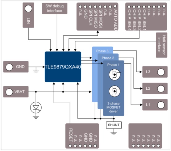 圖2. TLE9879QXA40簡(jiǎn)化的應(yīng)用框圖