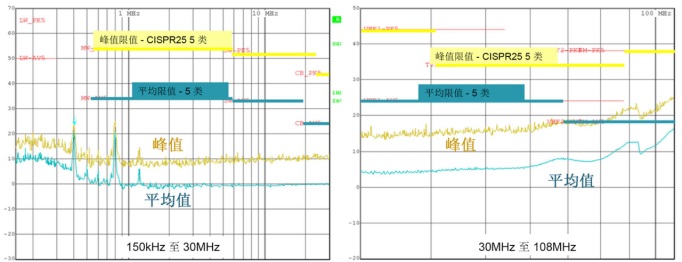 對于汽車終端設備,未來 EMC 合規(guī)性的主要推動力無疑來自于通過車輛間通信支持的自主車輛。針對“板載接收器保護”的 CISPR 25 規(guī)范已針對傳導發(fā)射設置了嚴格的限制,在 FM 頻帶(76MHz 至 108MHz)的限制尤為嚴格。
