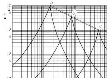圖 2是普通電感線圈的阻抗與頻率的關(guān)系圖,由圖中可以看出,電感線圈的阻抗開始的時(shí)候是隨著頻率升高而增大的,但當(dāng)它的阻抗增大到最大值以后,阻抗反而隨著 頻率升高而迅速下降,這是因?yàn)椴⒙?lián)分布電容的作用。當(dāng)阻抗增到最大值的地方,就是電感線圈的分布電容與等效電感產(chǎn)生并聯(lián)諧振的地方。圖中,L1 > L2 > L3,由此可知電感線圈的電感量越大,其諧振頻率就越低。從圖2中可以看出,如果要對(duì)頻率為1MHZ的干擾信號(hào)進(jìn)行抑制,選用L1倒不如選用L3,因?yàn)?L3的電感量要比L1小十幾倍,因此L3的成本也要比L1低很多。