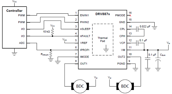 圖3.DRV887x系列典型應(yīng)用電路圖(1)