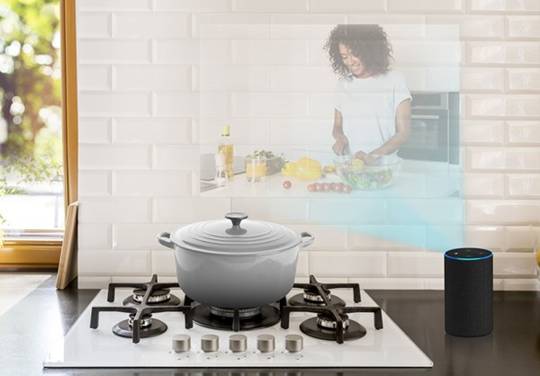 圖3:廚房或辦公室配有投影顯示器的智能音箱增加了視頻功能,有助于為用戶營造更加身臨其境的體驗