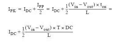 通過上圖我們可以看到,流過電感的最大電流為DC電流加開關峰峰電流的一半。上圖也稱為紋波電流。根據上述的公式,我們可以計算出峰值電流:
