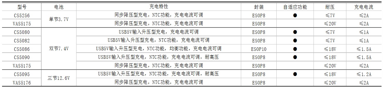 單節(jié)鋰電3.7V、雙節(jié)鋰電7.4V、三節(jié)鋰電12.6V對應(yīng)的充電管理IC選型表: