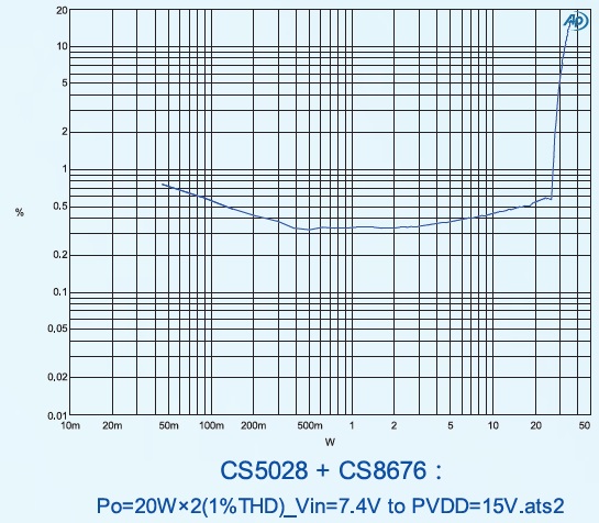 PO at 10% THD+N, VIN=3.7V RL=4Ω+22uH 15W(D MODE NCN OFF) PO at 10% THD+N, VIN =7.4V RL=4Ω+22uH 15W(D MODE NCN OFF) |