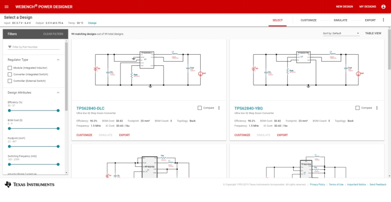 選擇眾多器件后,WEBENCH Power Designer會(huì)為每個(gè)器件執(zhí)行詳細(xì)設(shè)計(jì)。