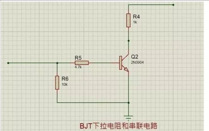 在BJT晶體三極管的基極端,上拉電阻和下拉電阻也起著至關(guān)重要的作用。在三極管的電路應(yīng)用中,串接在基極上的電阻起限制基級電流的作用,如下圖中的R2所示,