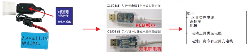 (2) CS5086E-----5V USB輸入,最大1.5A充電電流,帶NTC及電量均衡功能,7.4V鋰電升壓充電管理電路