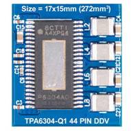 TPA6304-Q1采用TI最新的混合信號(hào)制造技術(shù),當(dāng)與3.3-μH電感器一起使用時(shí),整個(gè)4通道放大器解決方案(包括所有必需的無(wú)源元件)的總尺寸會(huì)縮小到272 mm2,如圖2所示。