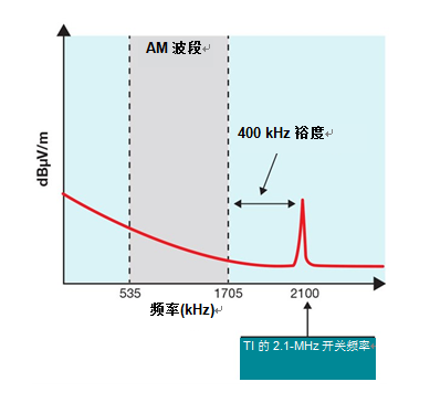 圖5:TPA6304-Q1的高開(kāi)關(guān)頻率高于AM波段