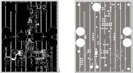 圖12.評估板EVAL-SSM3582Z PCB設(shè)計圖:左: 頂層,銅;右:第二層,銅