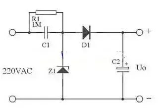 下圖為阻容降壓的典型應(yīng)用,C1為降壓電容,R1為斷開電源時(shí)C1的泄放電阻,D1為半波整流二極管,D2在市電的負(fù)半周為C1提供放電回路,否則電容C1充滿電就不工作了,Z1為穩(wěn)壓二極管,C2為濾波電容。輸出為穩(wěn)壓二極管Z1的穩(wěn)定電壓值。