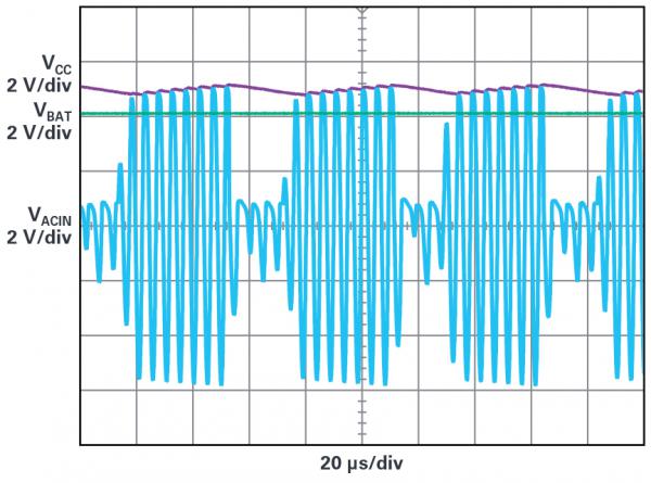 圖5.LTC4125未檢測到接收器時的運行情況。