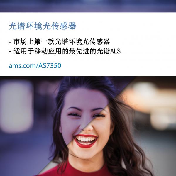 全球領(lǐng)先的高性能傳感器解決方案供應(yīng)商艾邁斯半導(dǎo)體(ams AG,瑞士股票交易所股票代碼:AMS)今日宣布推出業(yè)內(nèi)首款光譜環(huán)境光傳感器——AS7350,這是一款先進(jìn)的光譜環(huán)境光傳感器(ALS),適用于高端手機(jī)攝像頭。憑借這款全新傳感器,確保攝像頭即便在色彩反差極大的環(huán)境光下,或者在不太理想的/混合光源環(huán)境下,也都能獲得高品質(zhì)的圖像,讓用戶使用消費(fèi)級設(shè)備就能獲得專業(yè)級設(shè)備的拍攝效果。AS7350首次通過光譜重建實(shí)現(xiàn)光源識別,在各種光照條件下都能自動實(shí)現(xiàn)出色、精準(zhǔn)的白平衡點(diǎn),從而獲得出色的拍攝效果。