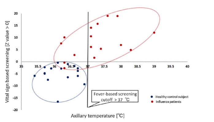 得到心率,呼吸頻率,以及體溫的特征以后,可以用傳統(tǒng)的統(tǒng)計(jì)分析方法或者M(jìn)L的方法進(jìn)行分類,區(qū)分出健康人或者受感染者。