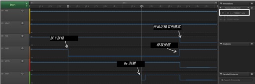 此外,要?jiǎng)?chuàng)建電源通斷按鈕,您仍然可使用/MR管腳,通過(guò)配置MRREC寄存器以進(jìn)入運(yùn)輸節(jié)電模式,并編程按鈕的持續(xù)時(shí)間,以確定需要保持低電平的時(shí)長(zhǎng);您剛剛創(chuàng)建了一個(gè)斷電按鈕。若要重新喚醒,請(qǐng)?jiān)俅伟聪掳粹o,如圖7所示。