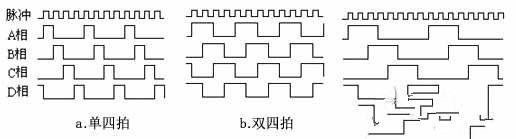 單四拍、雙四拍與八拍工作方式的電源通電時序與波形分別如圖2.a、b、c所示: