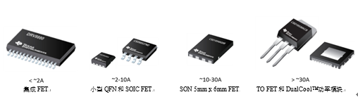 1:用于驅(qū)動(dòng)不同電機(jī)電流的各種封裝選項(xiàng)(封裝未按比例顯示)