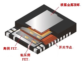 器件可耗散多少功率同樣取決于終端應(yīng)用的熱環(huán)境和FET封裝的熱環(huán)境。盡管表面貼裝器件通常會(huì)通過(guò)PCB散熱,但你可以將其他封裝(如上述TO-220或TI的DualCool™功率模塊器件(下圖2)連接到散熱器,以便從電路板上吸熱,并增加FET可消耗的最大功率。