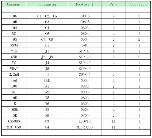 (5). CS5086 DEMO板物料清單