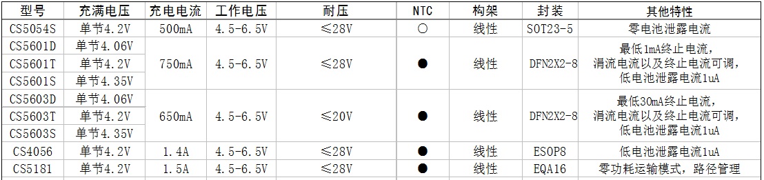 帶OVP過壓保護功能的單節(jié)線性鋰電管理充電IC選型列表