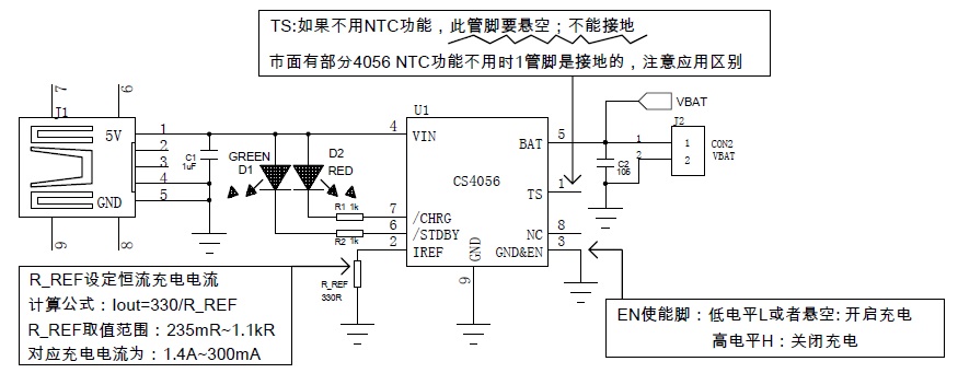 | CS4056 帶OVP過壓保護的1.4A線性單節(jié)鋰電充電管理IC應用參看 |