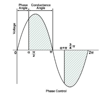 圖3. 相位控制會截斷交流波形,以改變提供給電機的功率。(一般圖形,來源: