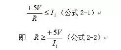 該排阻公共端接電源,即上拉電阻形式,作用是增強(qiáng)FPGA芯片I/O口(以下簡稱I/O口)的驅(qū)動(dòng)能力,實(shí)際上就是增加I/O輸出高電平時(shí)輸出電流的大小。當(dāng)I/O輸出高電平時(shí),+5V電源經(jīng)排阻與IN1~4相連,相當(dāng)于為I/O提供一個(gè)額外的電流輸出源,從而提高驅(qū)動(dòng)能力。當(dāng)I/O輸出低電平時(shí),可將I/O近似看做接地,而IN1~4因與I/O由導(dǎo)線直接相連,因此直接接受了I/O的低電平輸出信號(hào)。此時(shí),+5V電源經(jīng)排阻R、I/O內(nèi)部電路(電阻近似為零)后接地,因此該路的電流不能大于I/O的拉電流(Ii)最大值,有公式2-1: