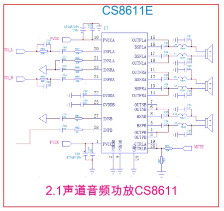 三.CS8611E _2.1聲道音頻功放部分原理圖