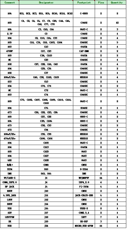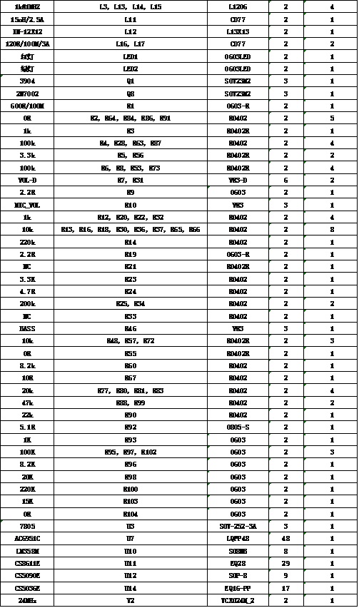 七. CS5090E+CS5036E+CS8611E+AC6951C整體板物料清單