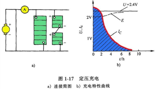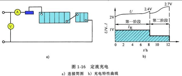 在充電過程中,充電電流保持一定的充電方法,稱為定流充電,如圖所示。
