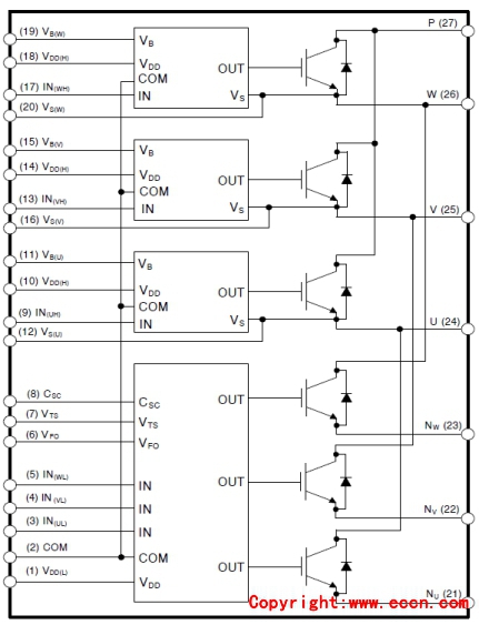 圖 2 IPM內(nèi)部框圖