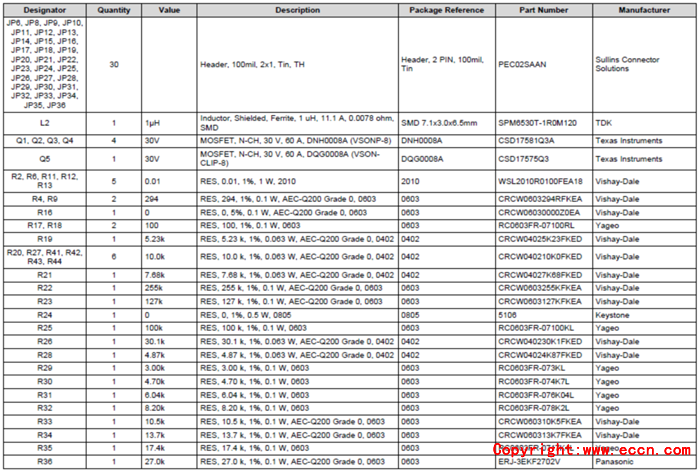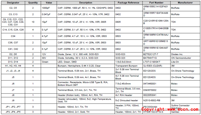 評估模塊BQ25790EVM (BMS027)材料清單: