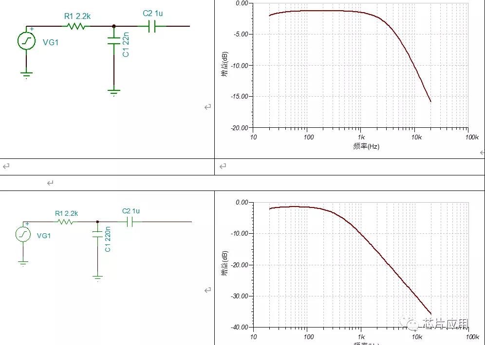 這組電路是最簡單的低通,缺點是中高頻衰減過快。因此可以稍作優(yōu)化如下: