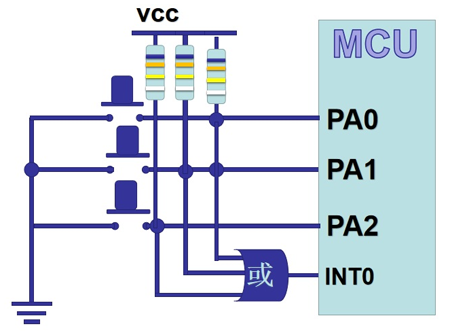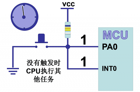 問題出在去檢測 I/O 口這個過程,CPU 必須每隔一段時間檢測,一般用定時器去實現(xiàn),間隔時間太長了達不到實時的性能,時間太短了有浪費 CPU 資源,因為在很多場合按鍵處于觸發(fā)的時間段時相當(dāng)少的,比如學(xué)校的自動圈存機,一般情況下時沒人用的,那就意味著 CPU 每間隔時間去查看 I/O 是非常不合理的,只有當(dāng)按鍵按下采取查看,這才是  合理的方式。