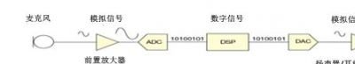 如圖1所示,傳統(tǒng)的音頻信號鏈中有麥克風、前置放大器、模/數(shù)轉(zhuǎn)換器(ADC)、數(shù)/模轉(zhuǎn)換器(DAC)、輸出放大器,以及揚聲器,它們之間使用模擬信號連接。但是,由于模擬電路被推到了信號鏈的邊緣,信號鏈中各集成電路間將出現(xiàn)更多數(shù)字接口。DSP通常是數(shù)字連接,換能器、放大器一般而言只有模擬接口,但現(xiàn)在也正在包含數(shù)字接口的功能。