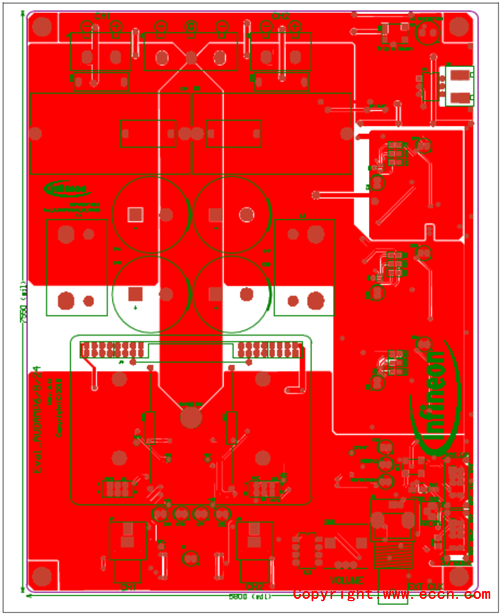 圖10. 評(píng)估板EVAL_AUDAMP24 PCB設(shè)計(jì)圖:主板正面