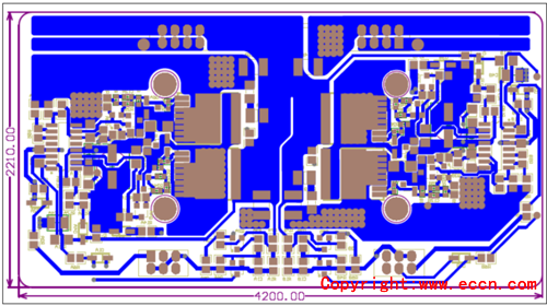 圖11. 評(píng)估板EVAL_AUDAMP24 PCB設(shè)計(jì)圖:主板背面