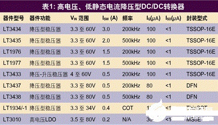 表 1:高電壓、低靜態(tài)電流降壓型 DC/DC 轉(zhuǎn)換器
