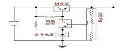讓我們繼續(xù):如果我們用一個(gè)三極管或者場效應(yīng)管,來代替圖中的可變阻器,并通過檢測輸出電壓的大小,來控制這個(gè)“變阻器”阻值的大小,使輸出電壓保持恒定,這樣我們就實(shí)現(xiàn)了穩(wěn)壓的目的。這個(gè)三極管或者場效應(yīng)管是用來調(diào)整電壓輸出大小的,所以叫做調(diào)整管。