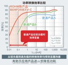 另外,新產(chǎn)品通過采用新型控制方式,同時(shí)具備了通常被認(rèn)為存在矛盾關(guān)系的高速響應(yīng)和高效率優(yōu)勢。不僅在高負(fù)載時(shí)的功率轉(zhuǎn)換效率高達(dá)92%(輸出電流1A時(shí)),而且在輕負(fù)載時(shí)的功率轉(zhuǎn)換效率也達(dá)到85%(1mA時(shí)),從輕負(fù)載到高負(fù)載都實(shí)現(xiàn)了非常出色的高效率,這將非常有助于進(jìn)一步降低行駛時(shí)和引擎停止時(shí)的功耗。