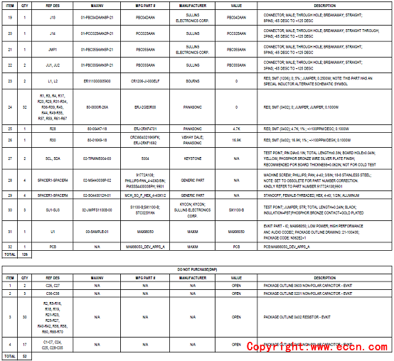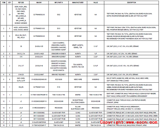 評(píng)估系統(tǒng)MAX98050EVSYS#材料清單: