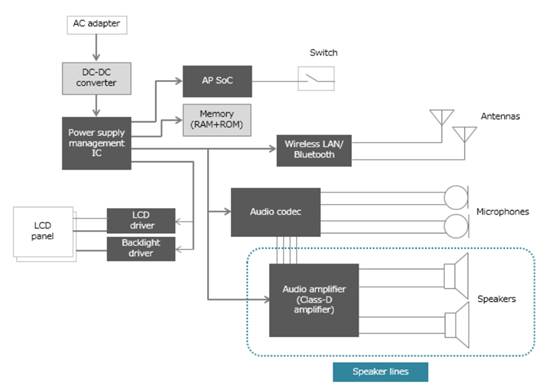 對于揚(yáng)聲器輸出為2 W至20 W等級的設(shè)備,例如AI揚(yáng)聲器,平板電腦和其他音頻設(shè)備,有必要在外部為LPF提供電感以容納大電流?紤]這些電感器已插入揚(yáng)聲器線路,因此它們不得影響這些線路中的信號。
