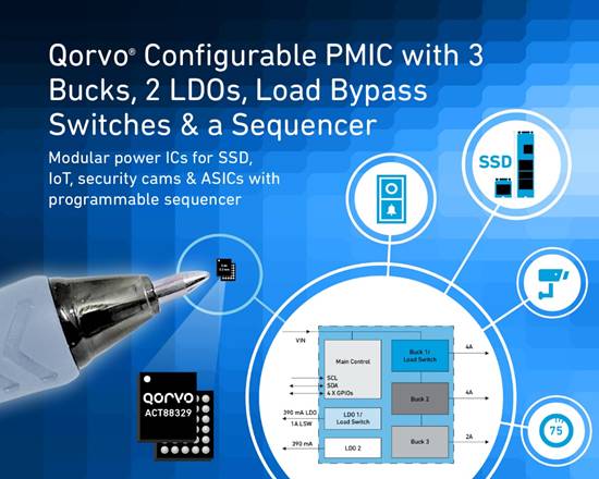 移動應用、基礎設施與航空航天、國防應用中 RF 解決方案的領先供應商 Qorvo®, Inc.(納斯達克代碼:QRVO)今日宣布,推出新一代多重時間可編程電源管理 IC (PMIC)---ACT88327/8/9/1,該電源管理 IC 針對高性能和緊湊設計進行了優(yōu)化。
