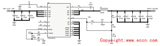 圖2. TPS51397A 5V 10A參考設計電路圖