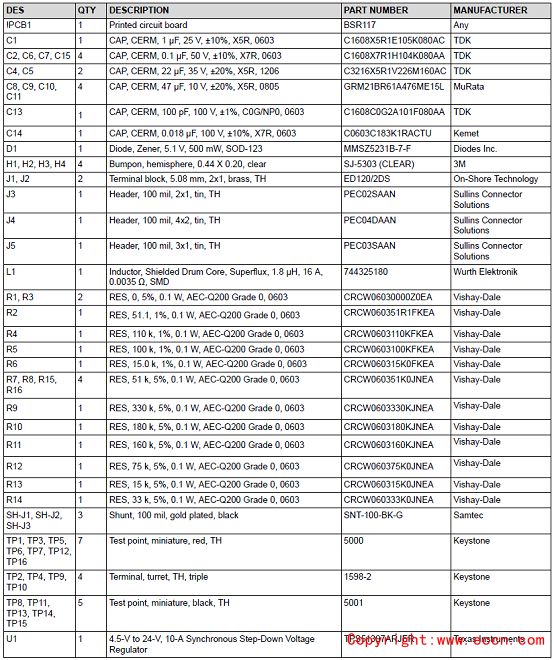 評估模塊TPS51397AEVM材料清單: