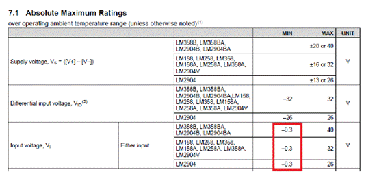 2.在運(yùn)放的輸入端加對(duì)地鉗位二極管,保證在任何上電順序下運(yùn)放的輸入電壓都不會(huì)超規(guī)格。