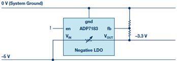 這些IC被稱為負(fù)線性穩(wěn)壓器。ADI公司的新型ADP7183負(fù)線性穩(wěn)壓器專為最低噪聲、最高電源抑制比(PSRR)而設(shè)計(jì)。這使得該器件非常適合對電源噪聲敏感節(jié)點(diǎn)的濾波應(yīng)用。